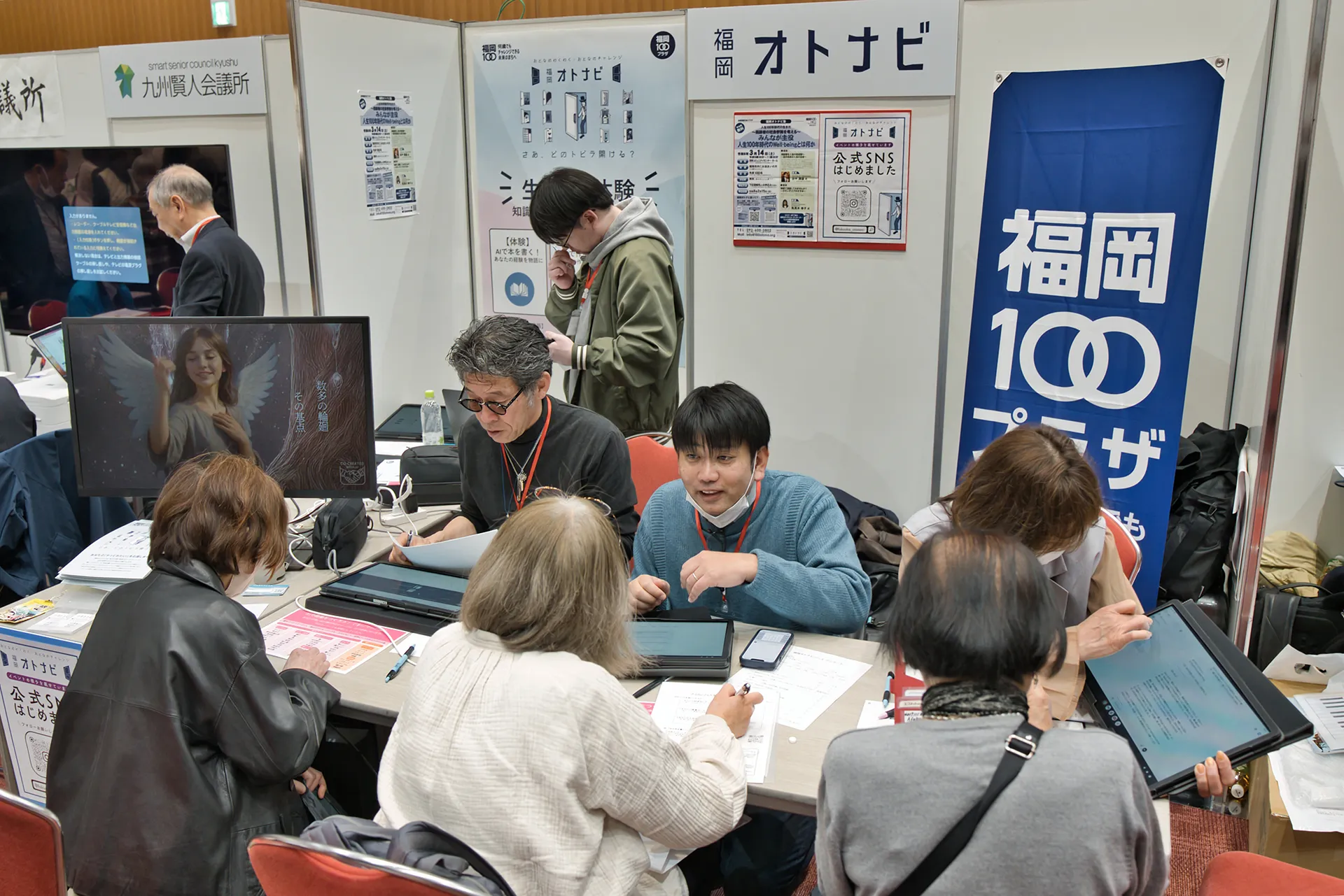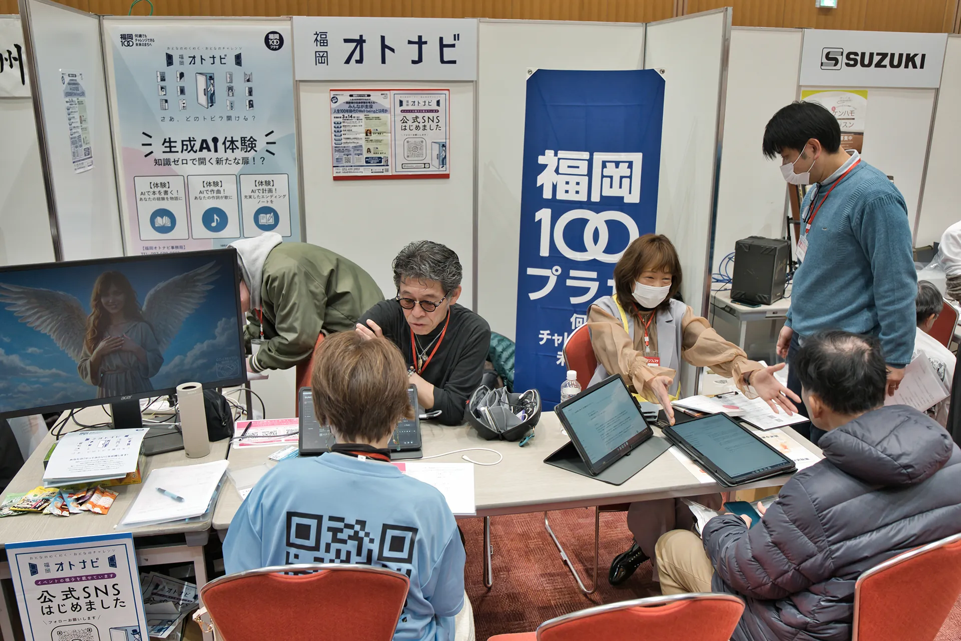 私たち福岡オトナビは、「AIを活用した社会参加」をテーマとして、まずはAIに触れるきっかけづくり・体験してもらうために講師の方とともにブース出展いたしました。